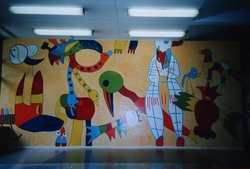 Toen ik in het derde jaar van de Pabo zat heb ik meegedaan met het kunstproject voor de basisschool De Rietborg in Terborg. We hebben eerst lessen gegeven aan kinderen van groep 1 t/m 4, waarin kinderen de opdracht kregen fantasiedieren te tekenen. Uit alle werkjes van de kinderen hebben we een beeldplan gemaakt en deze uitvergroot op de muur. Vervolgens hebben we samen met de kinderen de dieren ingekleurd met verf, wat ontzettend leuk was om te doen!